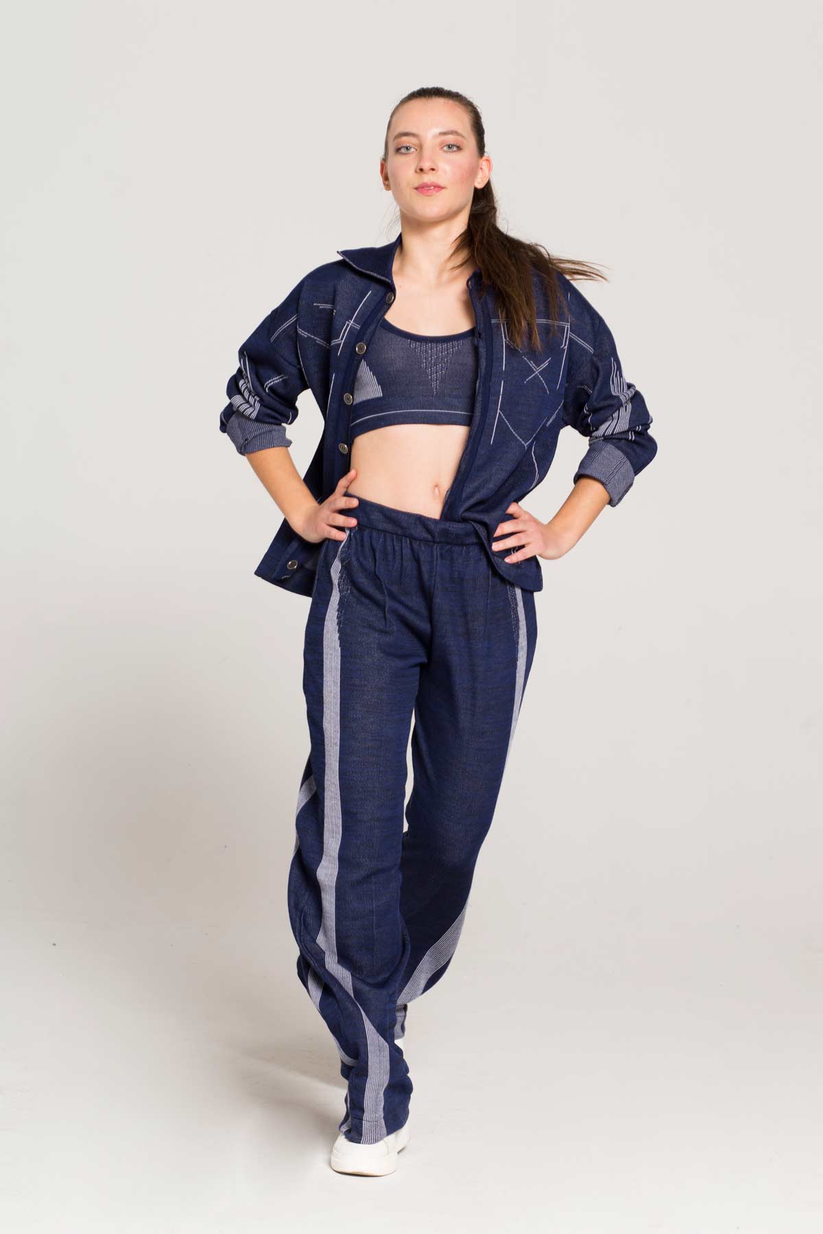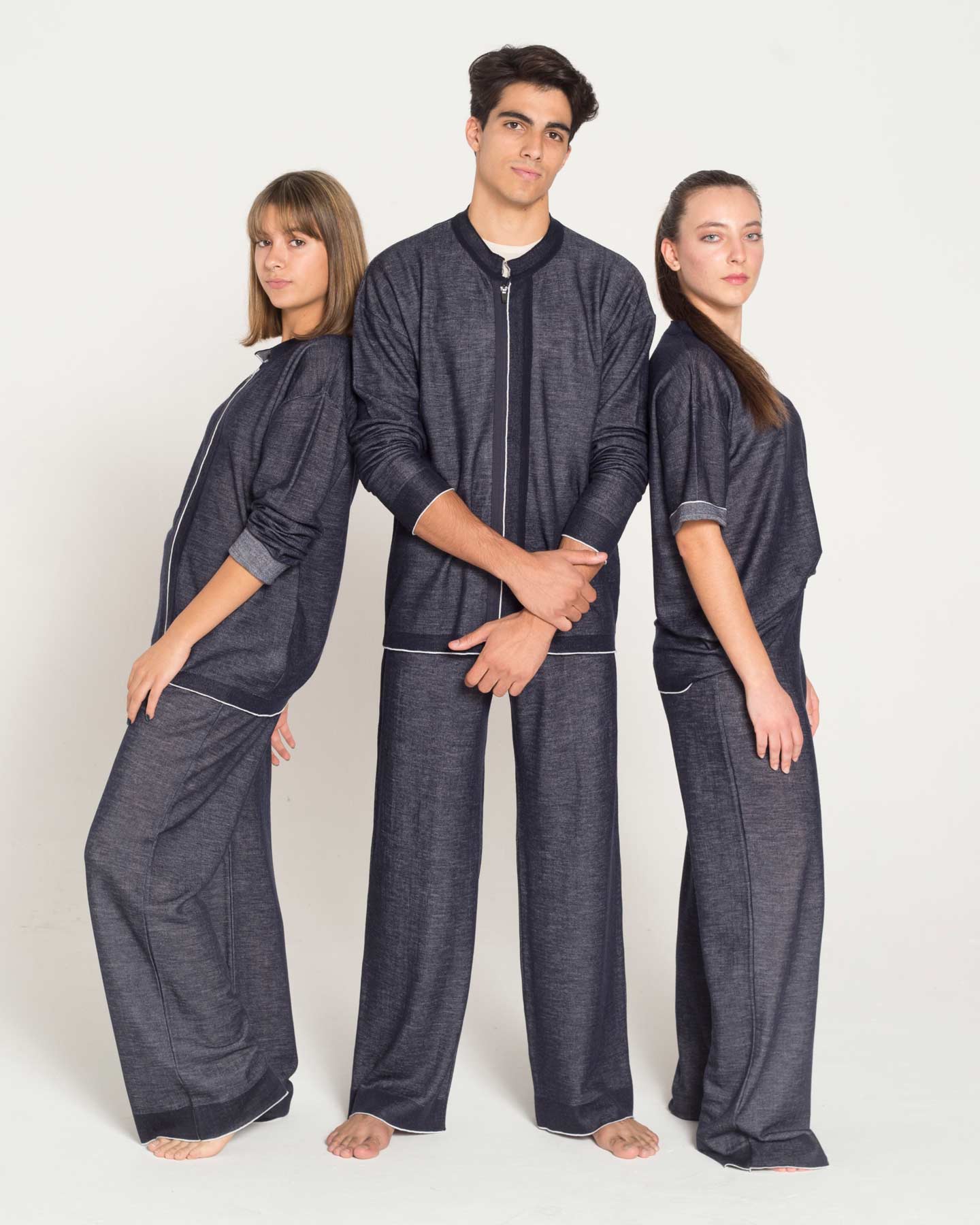 Η πορεία προς τον επαναπροσδιορισμό του τζιν για αυτήν τη συλλογή υφασμάτων και ενδυμάτων ήταν μια δοκιμή ανθεκτικότητας και δημιουργικότητας. Αγκαλιάζοντας την πρόκληση της πλεκτικής τεχνολογίας και της βιωσιμότητας σε κάθε ύφασμα, πειραματιστήκαμε με νήματα και δομές υφασμάτων για να δημιουργήσουμε ενδύματα που είναι τόσο οικολογικά όσο και στιλάτα.