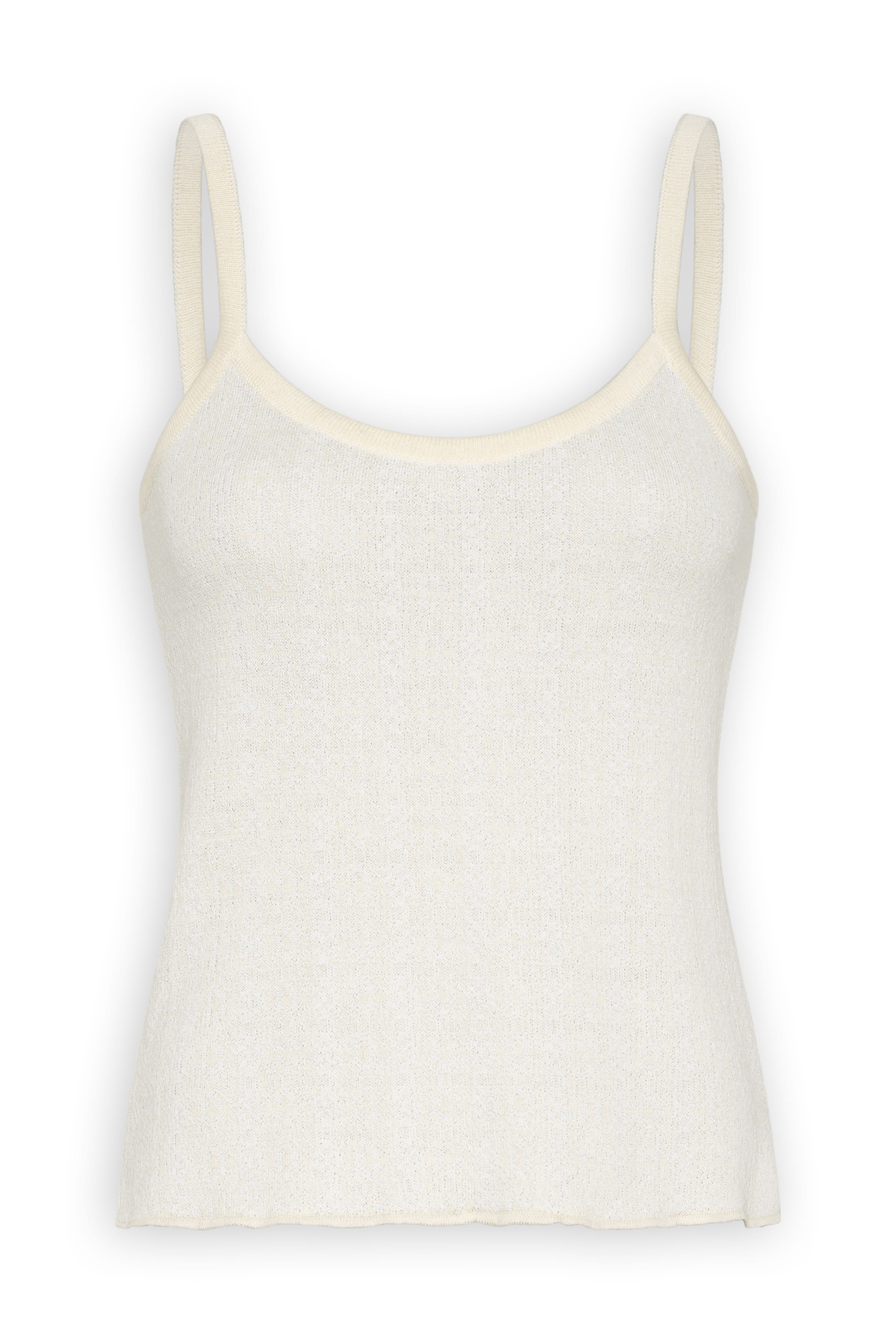 This luxurious cream cami top embodies effortless Mediterranean elegance with its flattering scoop neckline and distinctive triangle back design.