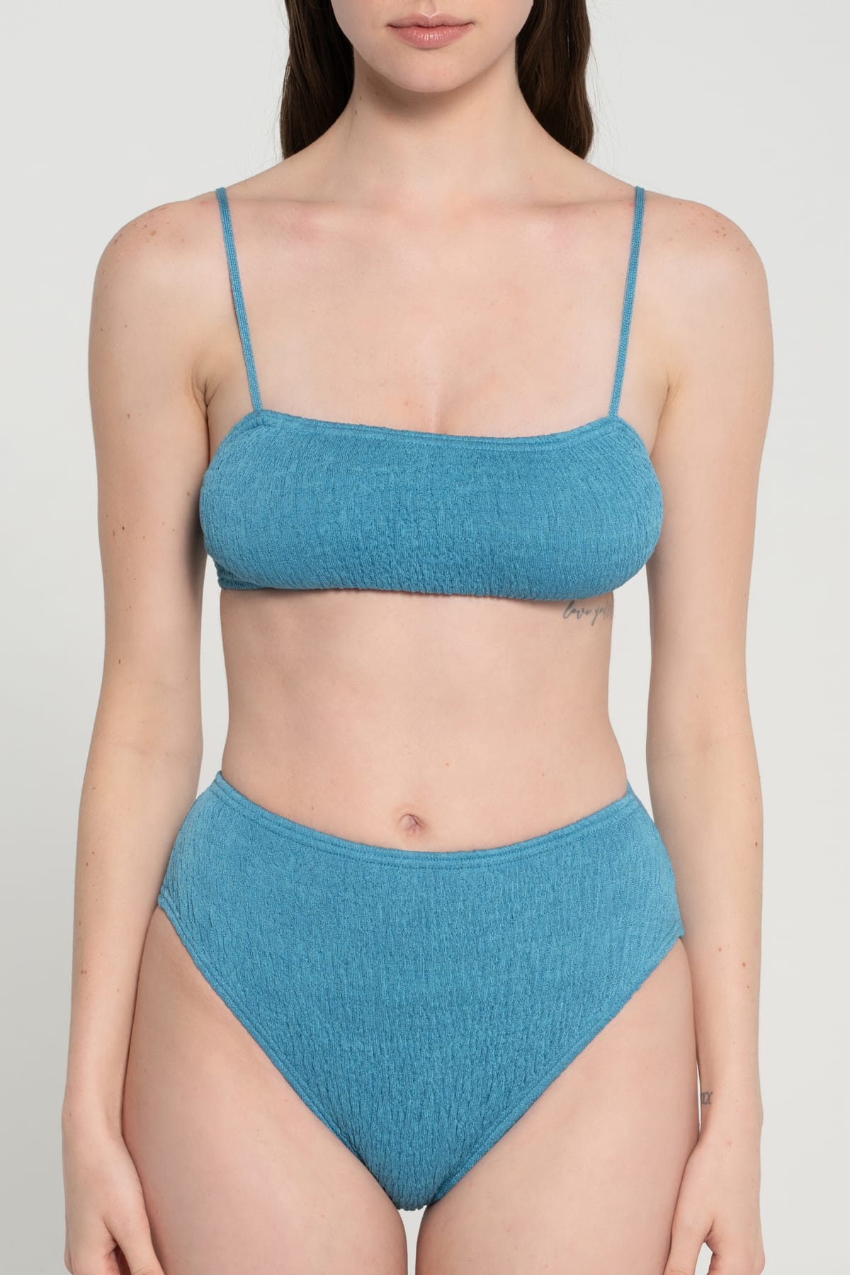 Cotton High Waisted Bikini Aegean Blue