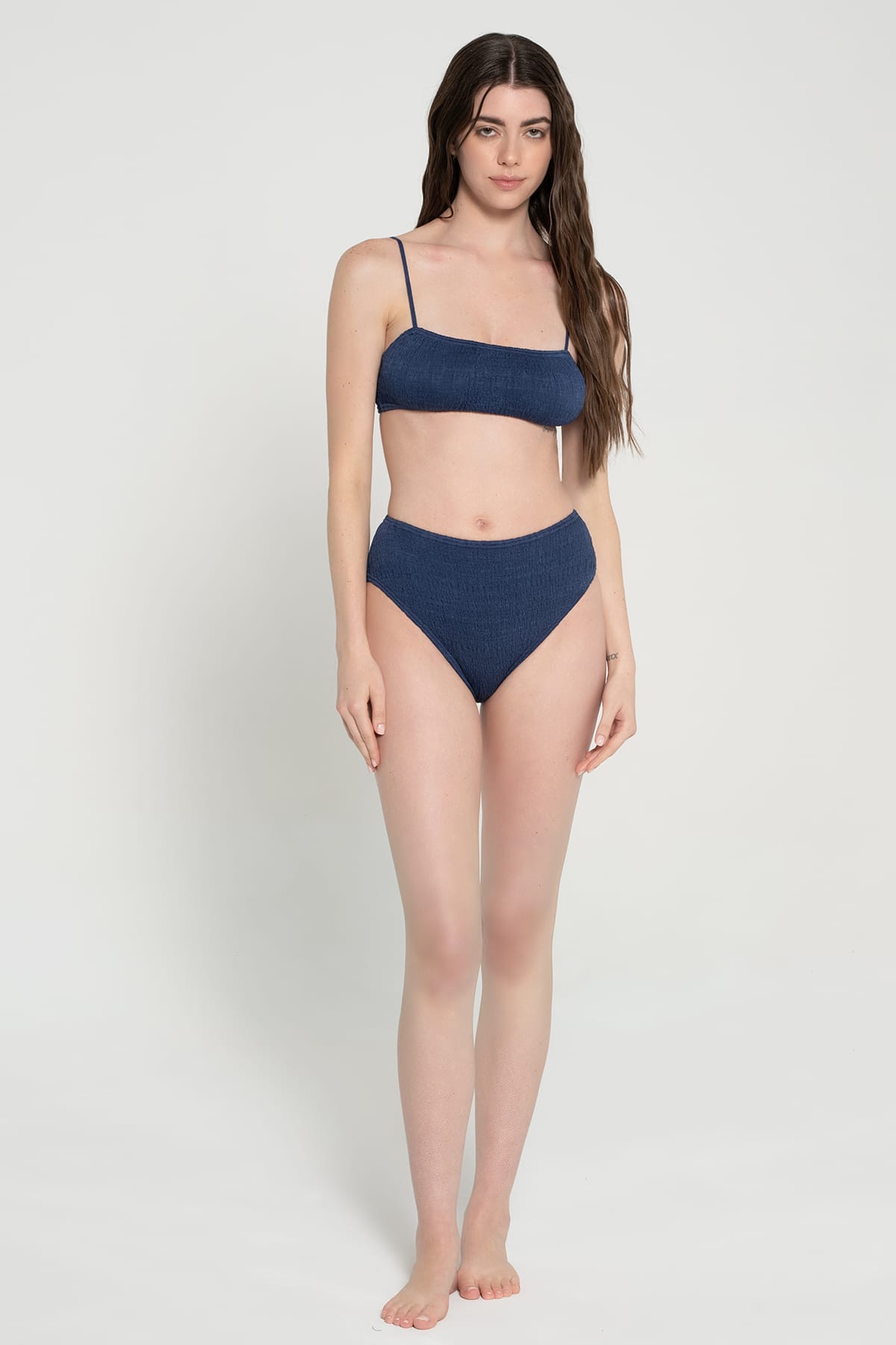 • High-waisted bikini bottom with a comfortable, flattering fit