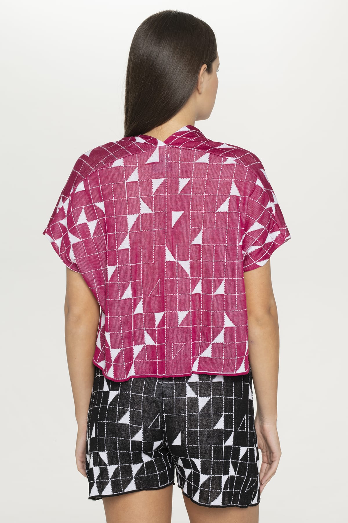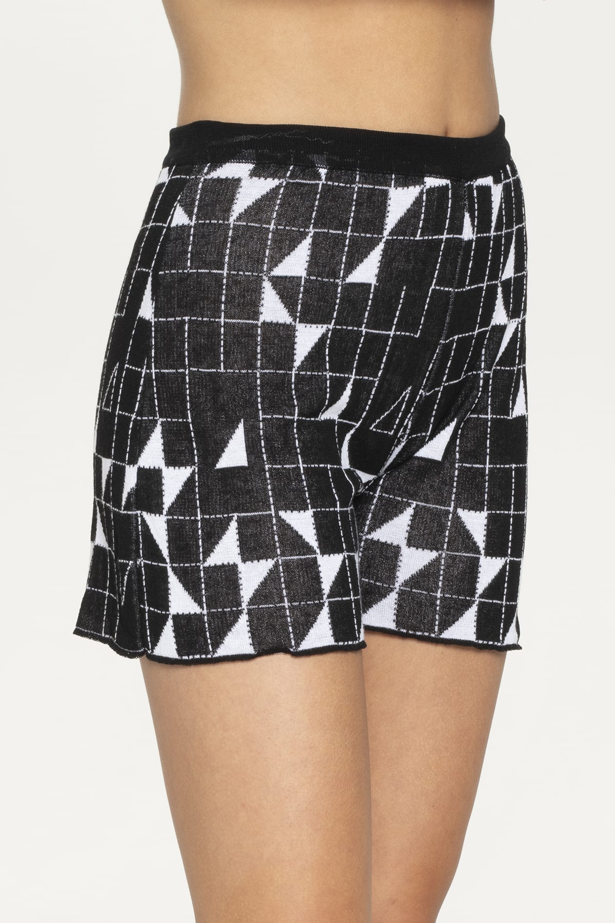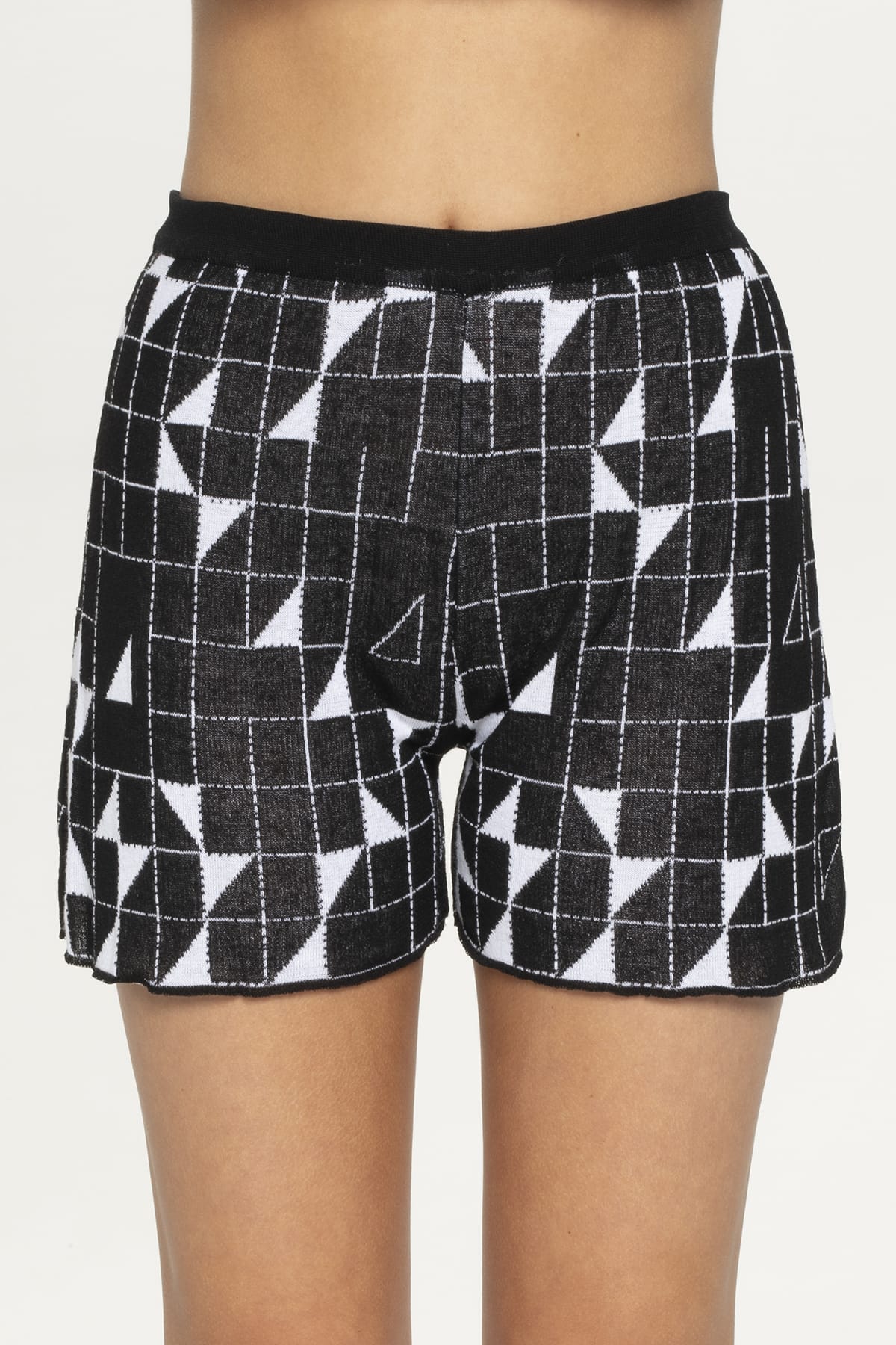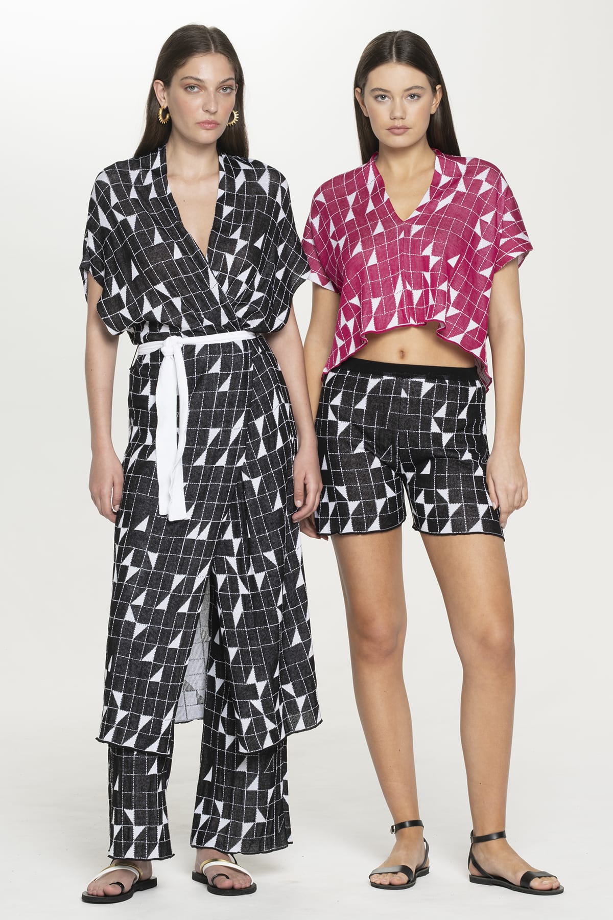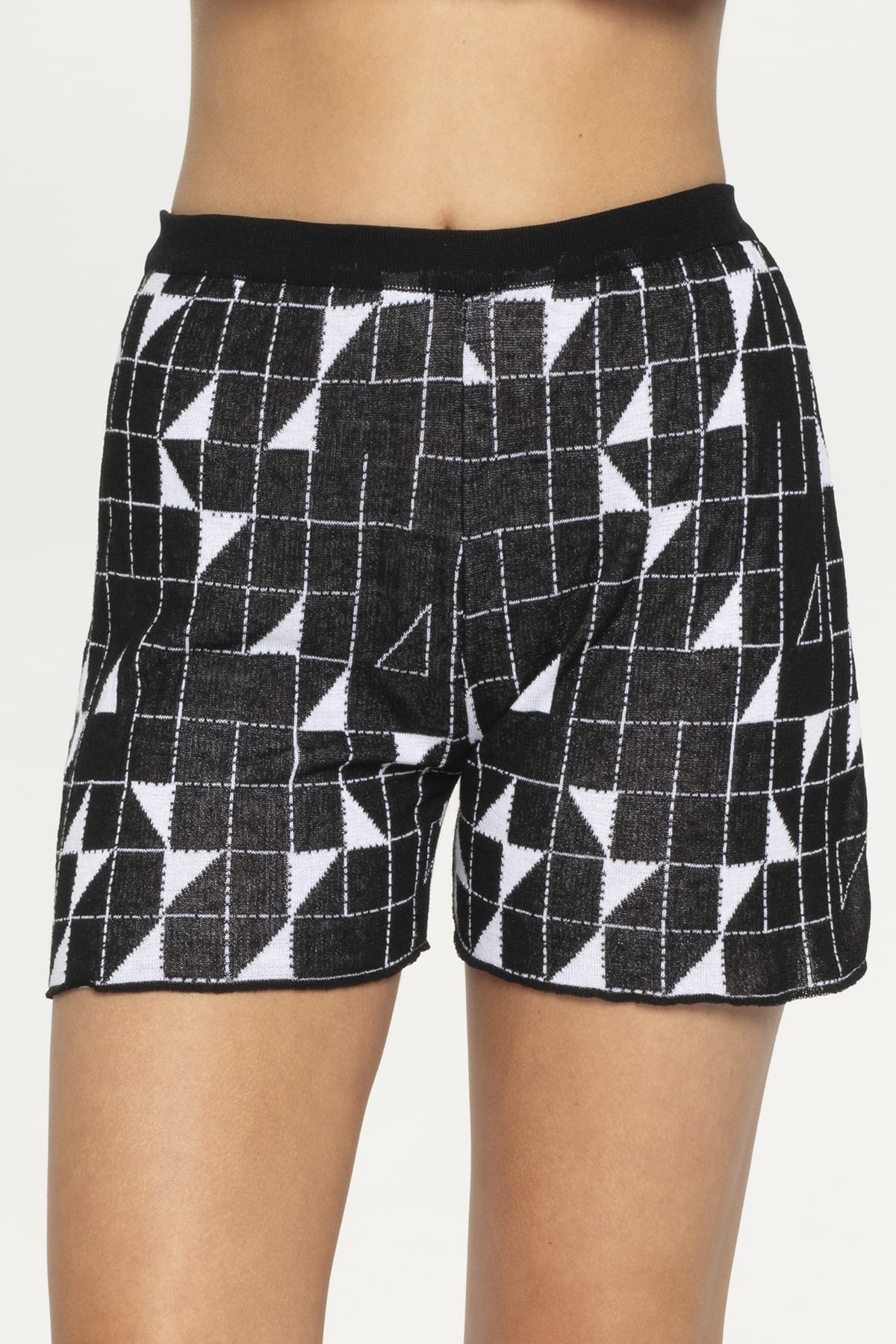 These sophisticated crossroads black and white knit shorts embody contemporary Greek style with their relaxed wide-leg silhouette and comfortable mid to high-waisted design. The bold geometric crossroads pattern draws inspiration from the architectural lines of Greek islands and villages, creating striking visual contrast. The soft, textured knit fabric drapes elegantly while providing exceptional comfort for all-day wear, featuring a flattering mid-thigh length. Crafted in Greece using Pepper Vally’s signature sustainable practices, these versatile shorts showcase premium natural fibers and innovative textile construction. The elastic waistband ensures perfect fit while the geometric pattern adds contemporary appeal suitable for both beachside relaxation and refined city strolling. It matches perfectly with the same pattern crop top.
