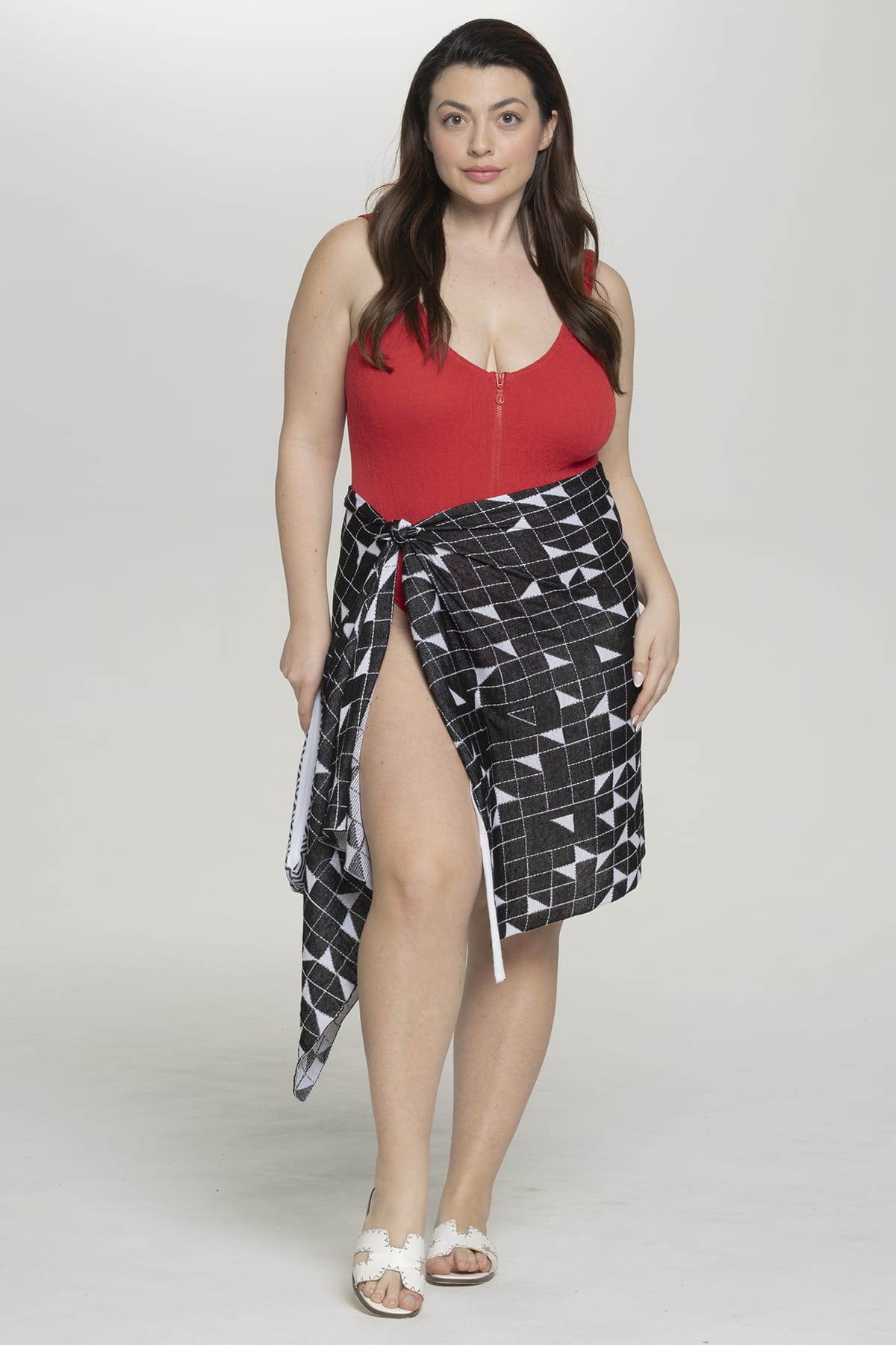 Αυτό το πολυτελές Crossroads παρεό έχει εμπνευστεί από τις αρχιτεκτονικές γραμμές στα σοκάκια και γραφικά στενά των ελληνικών νησιών και χωριών με το εντυπωσιακό γεωμετρικό μοτίβο του. Το εξαιρετικά ελαφρύ, πλεκτό ύφασμα διαθέτει ενδιαφέρον μαύρο-άσπρο σχέδιο διασταυρούμενων δρόμων, δημιουργώντας αβίαστο ντραπάρισμα και εξαιρετική άνεση. Κατασκευασμένο στην Ελλάδα με τις βιώσιμες πρακτικές της Pepper Vally, αυτό το πολυλειτουργικό αξεσουάρ αναδεικνύει τις premium φυσικές ίνες και την καινοτόμα κατασκευή υφάσματος. Τέλειο ως wrap φούστα, μαντήλι κεφαλιού, σάλι για χαλάρωση στην παραλία ή ακόμα και ως πετσέτα παραλίας, καθώς οι ιδιότητες γρήγορου στεγνώματος το καθιστούν ιδανικό για αβίαστες παραθαλάσσιες μεταβάσεις.
