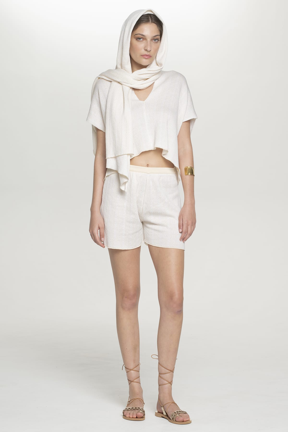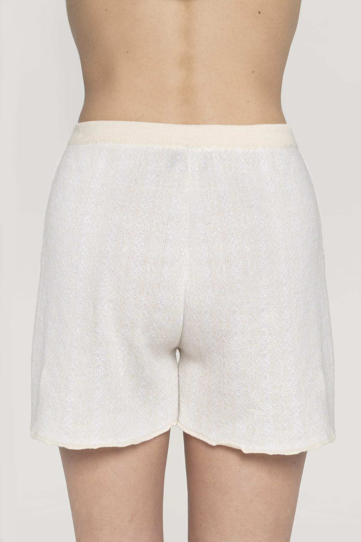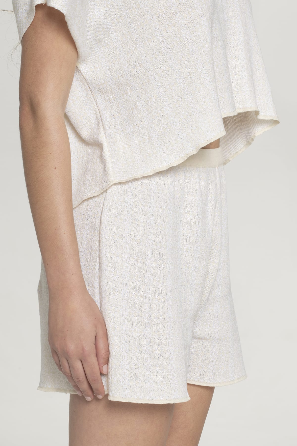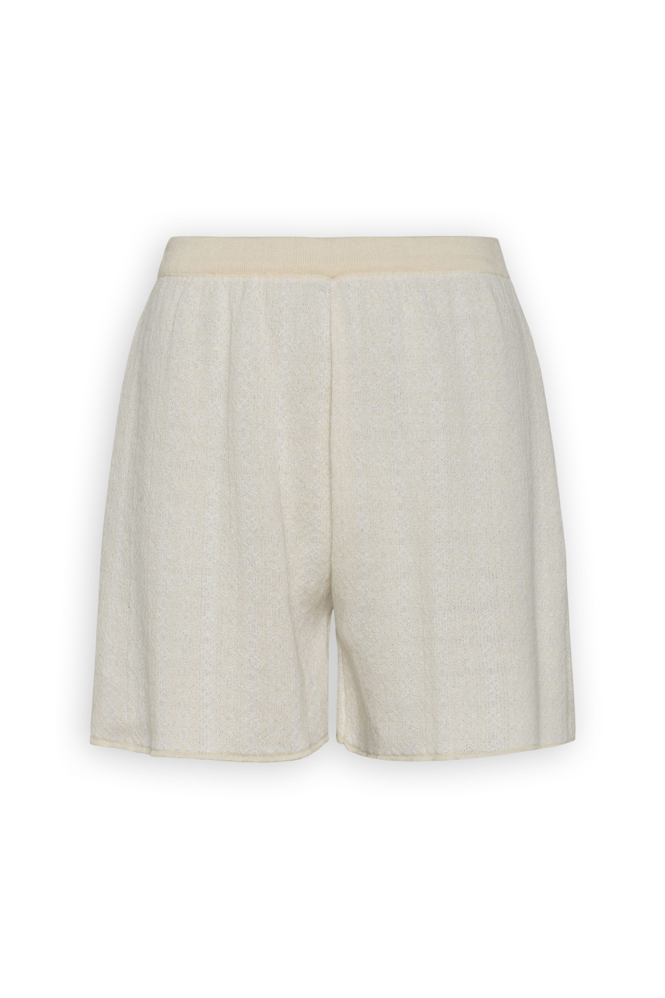 Αυτό το πολυτελές πλεκτό σορτς σε κρεμ χρώμα συμπληρώνει το τέλειο μεσογειακό loungewear σετ με τη χαλαρή wide-leg σιλουέτα τους και τον άνετο ψηλόμεσο σχεδιασμό.